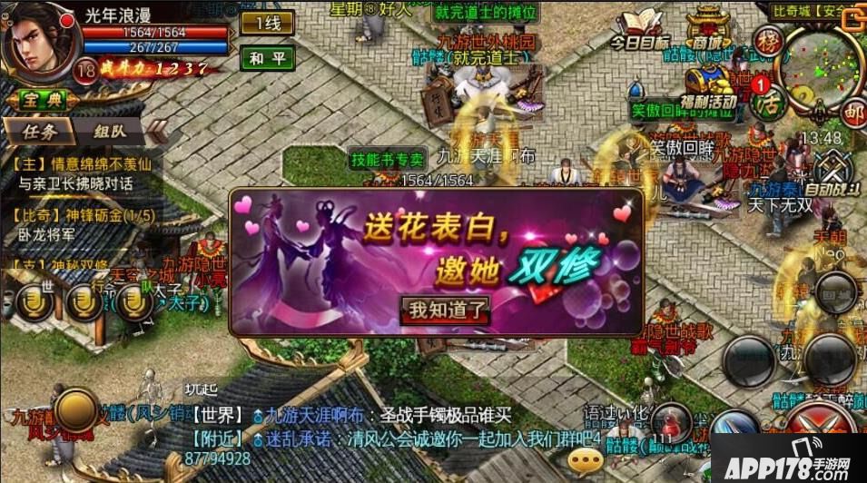 等级达到15级不但可以用玫瑰撩妹,还可以解锁新姿势,哦不,是新玩法。约妹子双修是进一步示好的表现。正所谓日久生情,每天修炼2次,一边双修一边陪着妹子从诗词歌赋谈到人生哲学,什么“比我爱你更重要的是陪着你”啊,“一起下副本,宝箱我的永远是你的”啊……只要双修玩到位,老夫保证你和妹子双双获得大量活跃值、经验值的同时,感情会急速升温。对了,双修这事,只能异性……