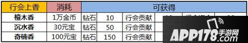 兄弟,行会上香一天一炷,千万别忘了。上香可以获得钻石,行会贡献,并且能给咱们行会增加行会资金。不同的香获得的奖励不一样。我已经为你整理出简洁易懂的表格,怎么样,有没有爱上我?