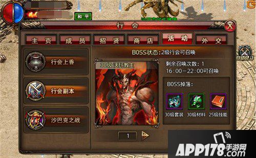 本会长和副会长会在每天16:00-22:00之间召唤行会boss,行会兄弟都可以在得到提示后进入副本,一起击杀boss。可召唤的行会boss跟行会的等级有关,高等级行会可以召唤出更多boss。