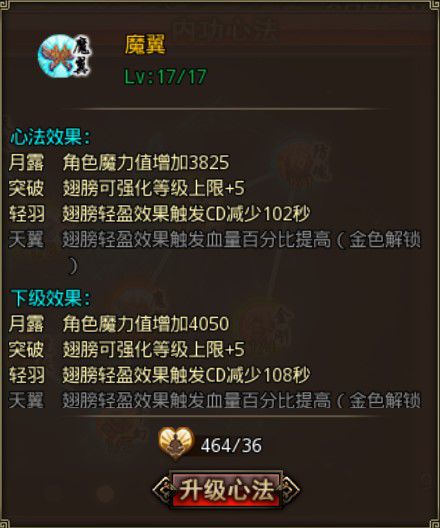 通过修炼心法秘籍,玩家内功可以提升品质,玩家心法品质及等级越高则此心法的增益数值就越明显,同时心法升品可解锁心法等级上限,这一切都是对玩家角色至关重要的。