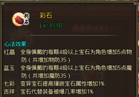 在之前的跨服战资料片版本中,《沙巴克传奇》推出了内功心法玩法让玩家可以全方位提升自己角色战力,在自身装备尚没达到自己期望的时候可以用内功心法拟补部分属性的不足,内功心法的推出受到了广大《沙巴克传奇》玩家的好评,让玩家PK变得更加多变,而随着越来越多玩家开放心法功能《沙巴克传奇》也积极听取玩家意见,在一周年的新版本中加入了彩石、天祥和天瑞三大心法,心法功能可以在玩家等级达到70级之后开启,通过升级心法可以提升各种不同的角色属性。