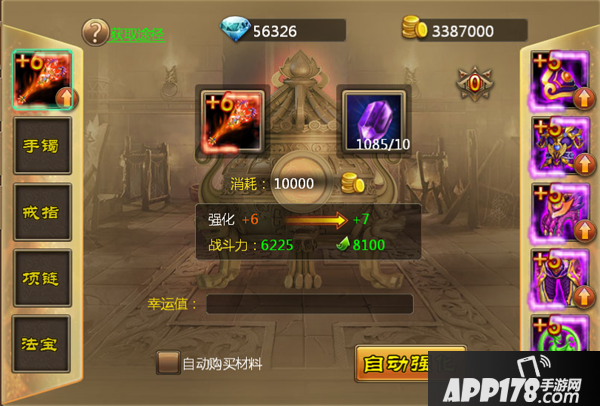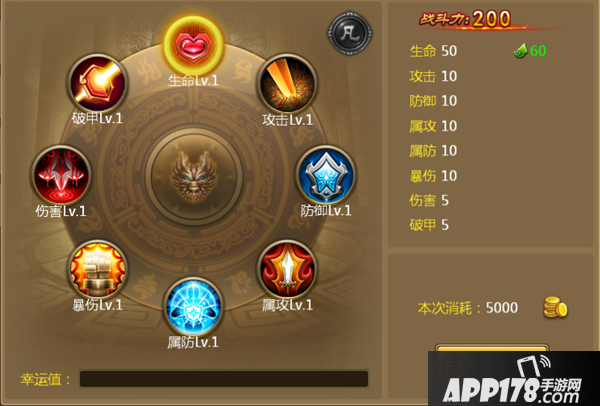 3、强化消耗强化石,强化失败不掉级,每次强化都会获得幸运值,幸运值越高越容易强化成功,成功后幸运值清零;