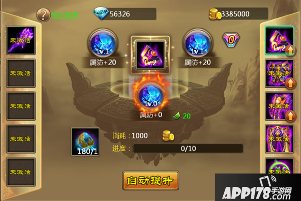 所有装备都有3个宝石孔,每个装备对应一种宝石属性,需要激活提升宝石等级增加属性。首次提升宝石就可以激活宝石孔的属性。同时,当镶嵌的宝石达到一定条件时,可以获得阶段属性加成。
