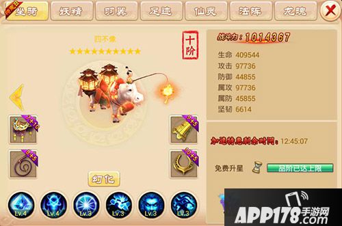 目前纯外形皮肤只开发了坐骑、妖精、羽翼,其中坐骑共有5款皮肤,妖精为3,羽翼为4。皮肤加成战力由稀有度决定,在相应界面越后的皮肤加成战力越高。虽然集齐所有皮肤并升满等级难度较大,但在游戏初期,并不一定要把皮肤都升满,只需尽可能多地收集不同种皮肤即可。其中,在坐骑皮肤里面,金麟瑞兽稀有度最低,在满等级情况下加成战力为375000!