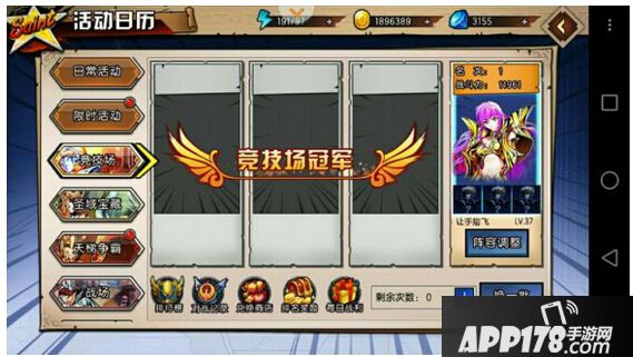竞技场:这是一个人机的对战,电脑的智商严重不足。在本次游戏中也是一个钻石的来源,每日奖励,排名越高给得钻石越多。