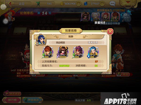 论剑榜的提升与玩家的战力无关,主要考验的是阵容中英雄的强度。在阵容的搭配上,可以选择自己目前培养的最好的英雄。另外玩家在搭配阵容前也需要在进入战斗前观察对方阵容来及时调整自己的阵容。