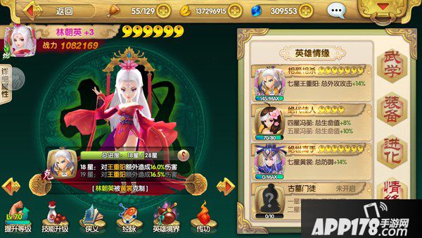 总结:总体而言,林朝英是一个用起来比较容易,强度超高的一个PVP型的英雄,她的技能几乎能够反制所有英雄。如果拥有的话是必不可缺一定要上阵的人选。当然,如果手中并无此英雄,想要克制她的话,首先就是要准备好随时躲避她的控制技能,可以尝试使用走位型的英雄,比如欧阳锋,用毒后就离开。走位是战胜林朝阳的唯一法则,跟她战斗时千万不可硬扛,会死的很惨。最后说一句,林朝英和王重阳会触发一个非常恐怖的连锁,那就是战斗时替换王重阳上阵可以触发被动技能进入4秒旋风狂暴状态。