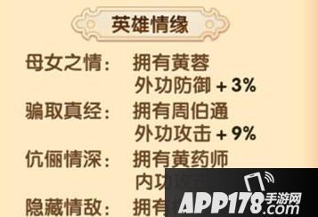 目前只有四个主动缘分,却没有被动缘分,挺可惜的,这个角色确实在射雕英雄传中没出场就挂掉了,很让大家遗憾,估计策划也是想借射雕英雄传3D手游让她和黄蓉一样,能让我们看到活生生的她,建议人物配音再深情些,让人听着就想落泪最好。周伯通被她骗了九阴真经,也只有单向缘分蛮可惜的,黄药师为她一个人过了一辈子,应该也加个缘分才是。梅超风……竟然是隐藏情敌…貌似策划和我看过同一本同人小说…