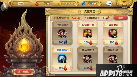 最具性价比的方法是比较有针对性的做法,就是在觉醒商店刷新购买。多刷新几次,很快就能凑够需要的神兵与神功。