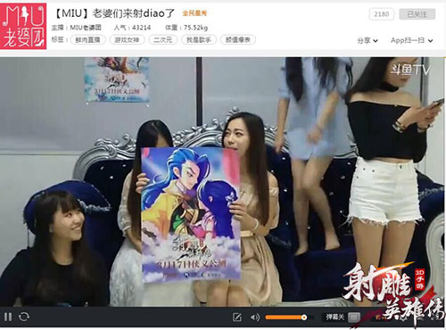 之前《射雕英雄传3D》手游就联合靠谱娱乐的直播栏目“MIU老婆团 ”进行了推广活动。直播期间美女主播进行了超多互动游戏。美女主播们热血PK和玩家们积极互动,更有粉丝获得了和指定主播共同玩《射雕英雄传3D》手游一天的机会。玩家还通过弹幕与主播进行零距离互动。参与直播间活动的部分玩家,还获得《射雕英雄传》专属游戏周边、键盘套件、小鸡手柄、360路由器等丰厚大礼。