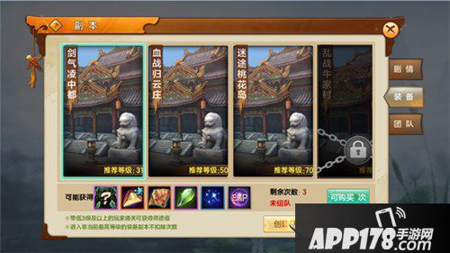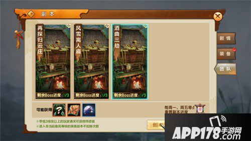装备副本是多人挑战的副本,最少2人,最多5人,副本背景也同样选取了原著中的经典桥段,相对于剧情副本,由于需求的玩家数量增加,在玩法与难度上也有一定的挑战,当然也会有更好的回馈,是获取装备的主要途径之一。