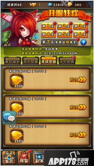 战力突破:达到80万(只要前面六天按节奏将七日活动的奖励都领了,达到55级后,战力到80万,相信也不是难事哦)