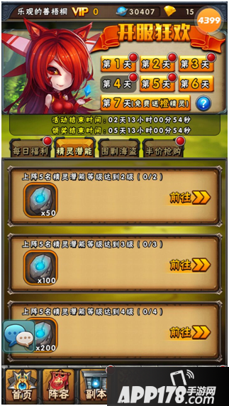 每日福利:登陆奖励(50钻+1个体力药剂)累计充值50元奖励(随机橙色精灵一只和10个体力药剂)