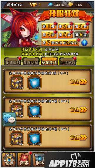 每日福利:登陆奖励(100钻+50个初级精炼石),累计充值100元奖励(10个橙色装备箱子+20个极品精炼石)
