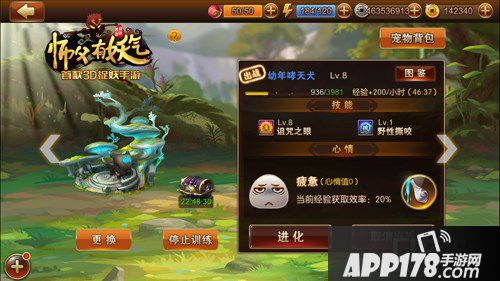 《师父有妖气》的宠物训练是一个比较轻度的挂机玩法,在战斗间隙,将宠物放置在宠物窝中,一定时间后即可为宠物获得大量经验。当宠物到达一定经验值之后即可通过道具进化成更强状态。宠物的训练和喂养效果和宠物的心情密切相关,心情值越高的宠物也就越容易获得更多的经验。喂养食物可以有效提高宠物心情。