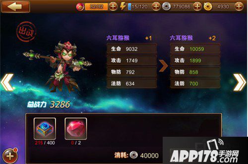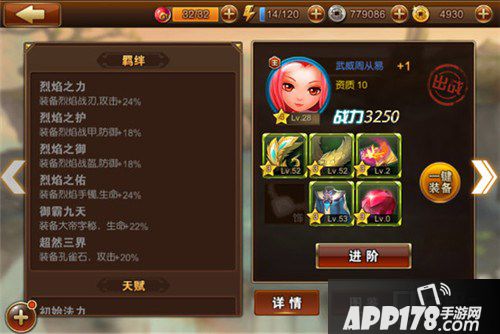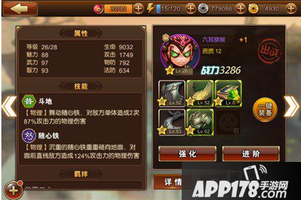 游戏中,神将可以通过强化来升级,强化需要神将卡牌或者将魂。到达一定值后就会升级。