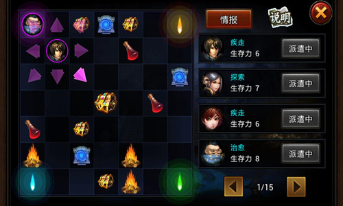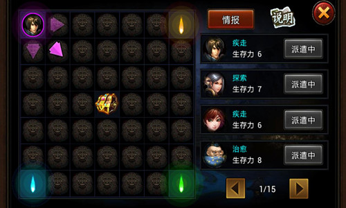值得注意的是,在地图上有各种道具,将武将的能力和道具相结合将会让你的探险事半功倍。偷偷告诉诸位主公,当你看到地面上的宝箱时不用犹豫,这并不是陷阱,直接就是奖励!另外,诸位主公选择的武将不能太弱哦,毕竟探秘的途中与其他玩家武将相遇时会发生战斗,所以当然要派出最强武将来秒杀对方。这样才能一路轻松探宝拿奖励,遇敌随手两下就能KO,简直完美!