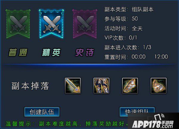 副本难度分为: