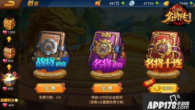 既然是"名将传",自然核心就是获得名将。《三国杀名将传》的名将入手难度不高,比如十连抽,玩家基本一天可以攒够2次名将十连抽的元宝,橙将红将概率不低。而且在商店中可以购买名将碎片,在各项副本中轻松扫荡同样可以获得。全套红将有点难,橙红混搭还是可以轻松入手的。