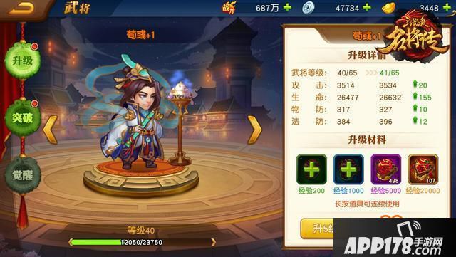 攒资源招募武将,每天做各种任务积累提升实力必备的道具和材料,不断给武将升级和突破之后,便能激活武将天赋,合理搭配阵容,更能在各种副本中与其他玩家对决厮杀。对于玩家来说,在养成武将的过程中不断攻克难关,最终成为一世枭雄,成就感十足。