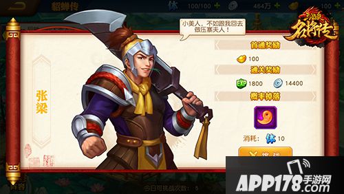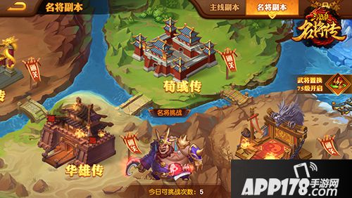 2、每天有5次名将副本挑战次数,每天可以继续挑战新的名将关卡或者扫荡已通过的关卡,但每个关卡每天只能挑战一次。