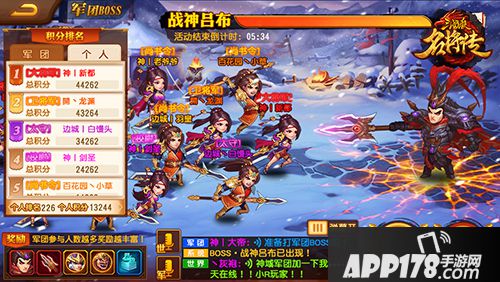 2. 每一次军团boss活动开启,每个主公均有3次挑战和3次抢夺其他军团主公的机会,挑战boss和抢夺其他军团主公均可获得积分。