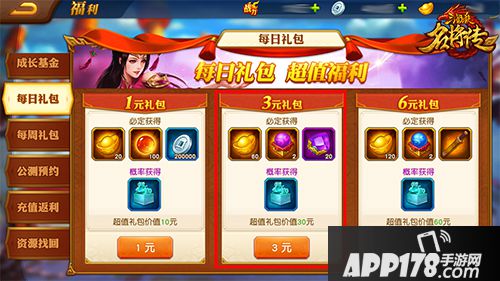每天小额充值即可领取包含精力丹的礼包。