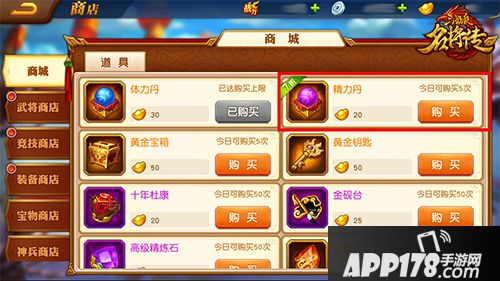 每天可以直接在商城购买一定数量精力丹,可购买的次数与玩家VIP等级挂钩。