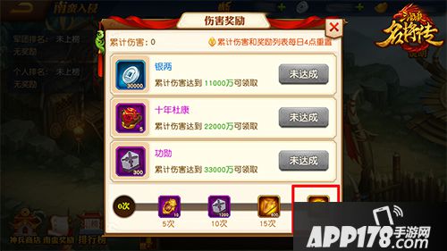 每天完成南蛮入侵伤害奖励领取20次,可获得元宝奖励。