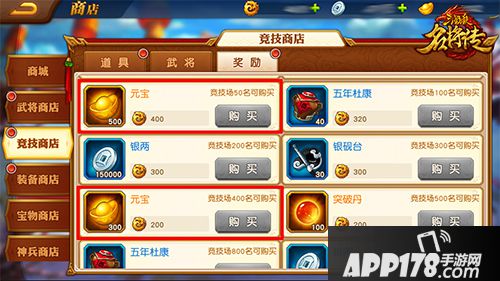 竞技场商店、装备商店达成指定目标即可兑换元宝奖励,只能获得一次。