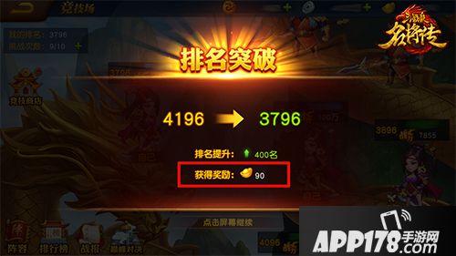 每次突破自己的历史最高排名,都将获得一笔可观的元宝奖励。在前期大家战力都不高的情况下,尽快打通竞技场可获得大量元宝。