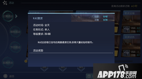其他说明:1. 每天早上8:00自动发放H.A.C悬赏;2. 每个悬赏任务完成后,会自动发放下一个悬赏任务;3. 每天可以完成20个双倍的悬赏任务。