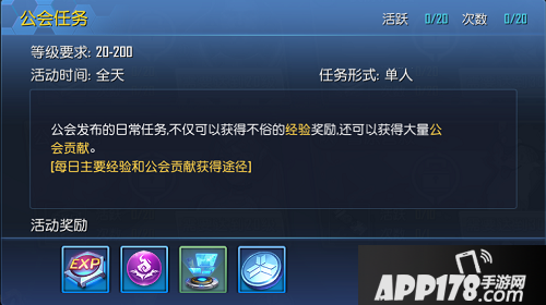 而接取公会任务的前提是加入或者创建一个公会,公会任务不仅有经验和银币的奖励,更可以得到公会贡献,公会贡献可以在公会福利中升级公会技能或者换取公会的礼物,当然啦,也会有惊喜宝箱哦,每天也是最多完成20次。