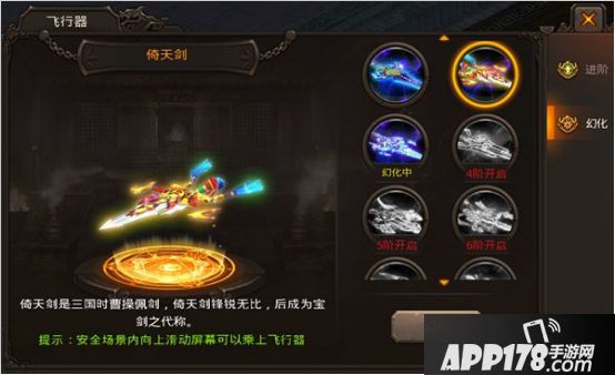小伙伴可以通过对角色上下滑动控制飞行器出战和休息,飞行器除了拥有酷炫的外表,同时也是有一定的属性加成功能,随着等级提升,不断解锁高阶飞行器的。如果你是土豪,请不要吝惜培养飞行器是的元宝金币。