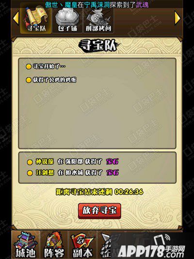 寻宝时间为半小时,半小时后完成寻宝,获得寻宝奖励,当然玩友们也可中途放弃寻宝,但不会获得奖励。
