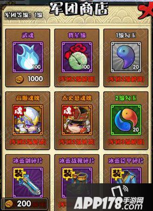 主公可以使用军团奖牌在军团商店购买各种商品。军团等级越多,可以购买更多的难得一见的稀世珍品哦!