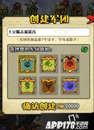 如果想要在军团中快乐的玩耍,首先需要玩家的主公等级到达24级,才能解锁军团系统哦!成功解锁军团可以选择加入别人创建军团也可以自己创建军团!在创建军团中玩家可以为自己的军团起名字,同时也可以选择军团的旗帜,一切准备就绪后需要消耗20000金币作为创建军团的费用,即可拥有自己的军团了!