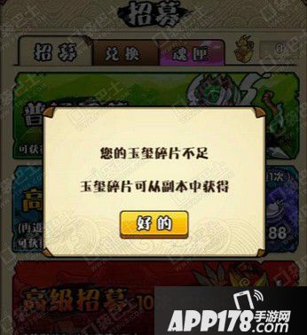 普通招募是单次招募,每次招募可以获得白色以上武将。人品好的话,获得紫色武将也是很有可能的,就是几率低了点。普通招募需要消耗玉玺碎片,每次招募需要消耗3个玉玺碎片,玉玺碎片可以在剧情副本中获得。
