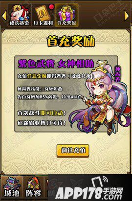 首冲任意金额,即可获得20个孙尚香魂魄,可兑换紫色品质武将孙尚香,每个账号仅限一次。