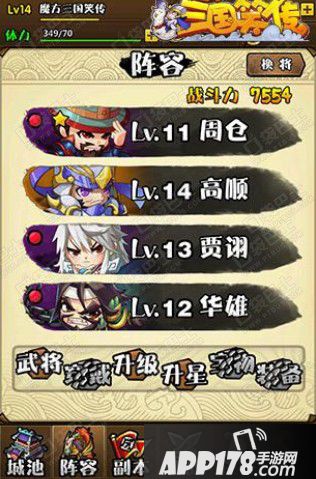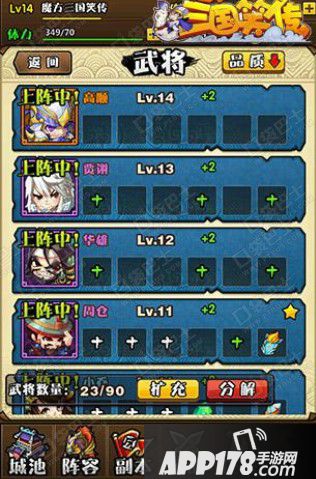 三国笑传武将系统位于阵容界面,而武将系统里面的武将都是玩家们目前手上有的武将卡牌,要知道,三国时代的武将可是很多的哦,后期会入手更多的武将卡牌,同时也需要更多的武将携带上限。