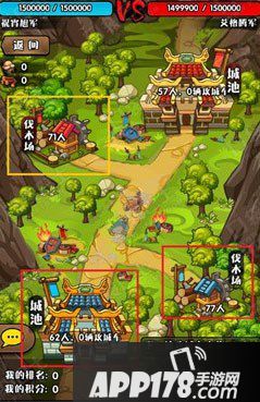 玩家互相攻伐!每个阵营各有城池一座、伐木场一座,率先攻破对方城池者为胜!只可通过攻城车攻击对方城池,因此我们需要做的事情就是大量制造攻城车,源源不断的开赴对方城池。