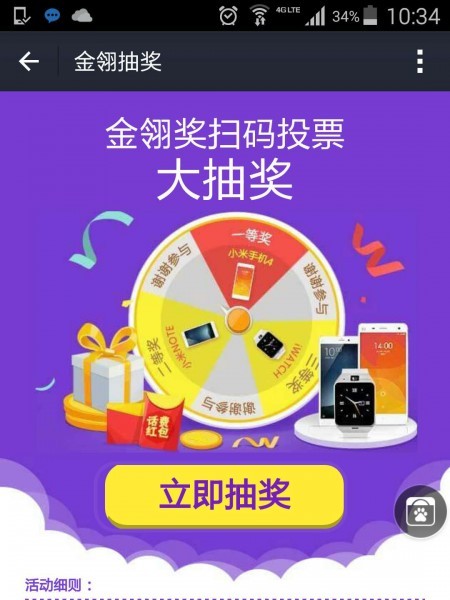 4.进入抽奖页面点击“立即抽奖”。((抽奖机会和投票次数等同,抽奖机会可累计,整个投票期同一用户抽奖次数最多500次。)