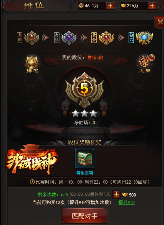排位是沙城战神的竞技场系统,设立排位赛的初衷,就是为了让玩家们发挥出自己的最高水平,衡量自己的真实水准。玩家可以在该系统中和其他玩家一较高下,获得奖励。