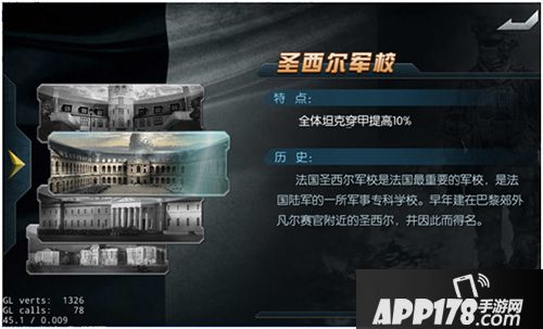 法国圣西尔军校是法国陆军的一所军事专科学校。因早年建在巴黎郊外凡尔赛官附近的圣西尔而得名。圣西尔军校能够给予全体坦克穿甲提高10%的属性加成,适合穿甲型坦克玩家。