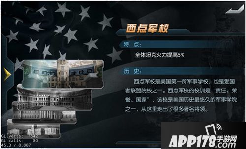 西点军校是美国历史上最悠久的军事学院。以“让纪律看守西点”的西点法则闻名于世。西点军校能够为全体坦克带来火力提高5%的属性加成,适合收集了大量高火力型坦克的玩家。