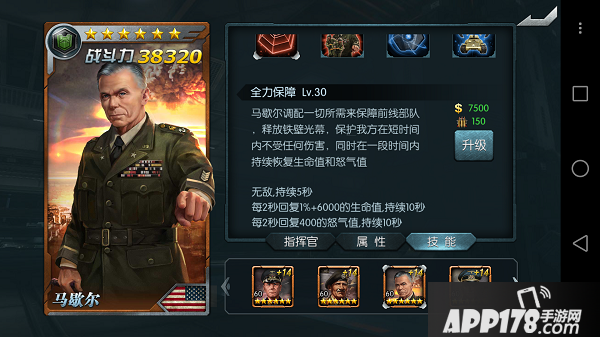 马歇尔指挥的单位,使全体单位拥有超强的对中型坦克的抵御能力,大幅降低受到的中型伤害。