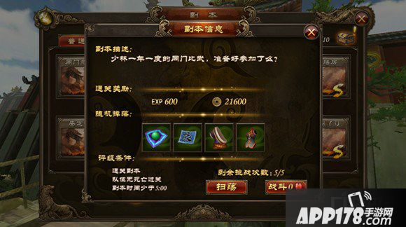 以上就是APP178手游小编为您带来的《功夫少林》副本系统简介。更多精彩内容请继续关注APP178手游功夫少林专区。