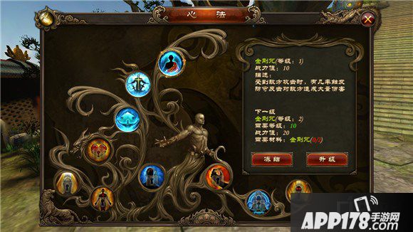 《功夫少林》中特色的心法系统,让玩家通过游戏体验到少林武僧修炼心法的过程,并通过修习心法使得玩家自身实力增强,从而更加爽快的体验《功夫少林》的武侠世界。