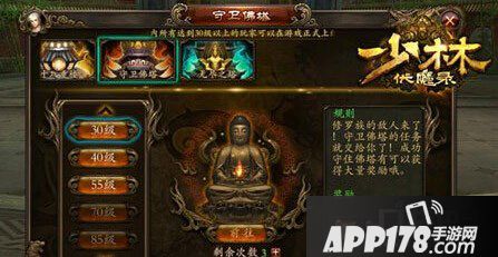 在《功夫少林》中,“守卫佛塔”的玩法一直是玩家必刷的副本之一,“守卫佛塔”30级开放,大量产出三职业心法秘籍。下面小编为大家带来通关“守卫佛塔”的简单方法。