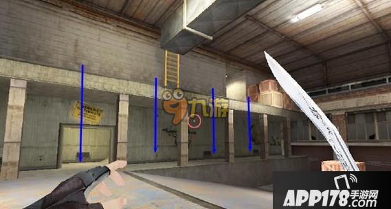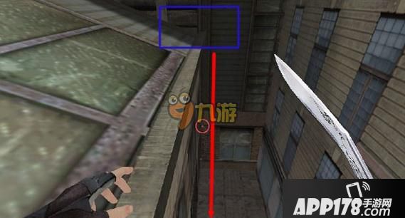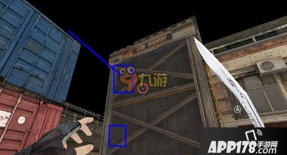 此外,第二大阴人宝地就是图中蓝色方框的位置了。那里面是个角落,所以很多人都会无视。居高临下,下面的人即便发现了你,也很难打中。(但也有例外,有的时候从下面往上打子弹会贯穿身体直接打头)